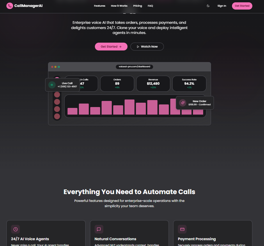 Call Manager AI creates a custom-built AI phone agent named LILY, that answers your phone, takes complete orders, suggests add-ons, follows your delivery rules, and processes secure payments.